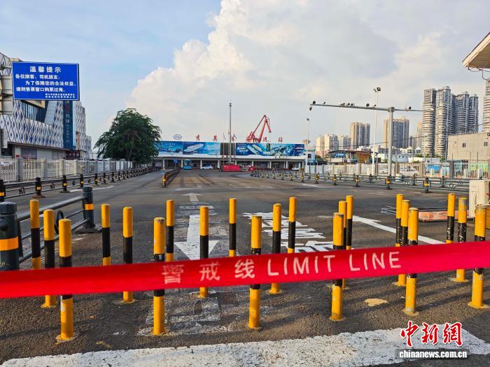 9月23日,海心秀英港进心处推起警惕线。海心市接通输送战港航办理局23日颁发布告,授往年第18号台风“桦添沙”作用,琼州海峡航路已于当天18时起齐线下运,估计泊运将赓续至9月25日傍晚。中新社记者 林士杰 摄